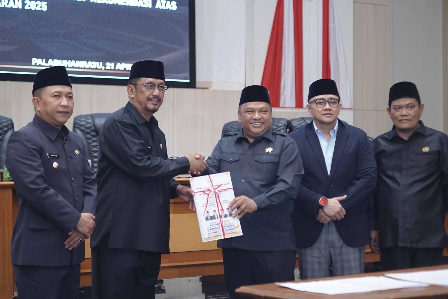 PANGLAWUNGANNEWS.COM, PALABUHANRATU – Pemerintah Kabupaten Sukabumi menyambut baik masukan dan catatan strategis yang diberikan oleh DPRD atas Laporan Keterangan Pertanggungjawaban (LKPJ) Tahun Anggaran 2025. Bupati Sukabumi H. Asep Japar menyatakan komitmennya untuk menjalankan seluruh rekomendasi dewan sebagai bahan evaluasi demi perbaikan pelayanan kepada masyarakat. Penegasan ini disampaikan usai prosesi penandatanganan berita acara persetujuan bersama dan penyerahan keputusan DPRD dalam rapat paripurna, Rabu (22/4/2026). Apresiasi tinggi diberikan oleh pimpinan DPRD kepada seluruh komisi yang telah melakukan kajian komprehensif terhadap kinerja pemerintah sepanjang tahun 2025. Sinergi antara legislatif dan perangkat daerah diharapkan terus terjalin kuat agar program pembangunan di Kabupaten Sukabumi dapat berjalan tepat sasaran. Bupati Asep Japar menekankan bahwa masukan dari DPRD merupakan bagian tak terpisahkan dari upaya mewujudkan penyelenggaraan pemerintahan yang lebih transparan dan efektif ke depannya. Terkait pembahasan regulasi daerah, Bupati juga mengamini adanya mekanisme baru berupa proses fasilitasi Raperda di tingkat Kemenkumham dan Provinsi. Meskipun hal ini menyebabkan beberapa agenda Raperda harus dijadwalkan ulang, Pemkab Sukabumi memastikan proses tersebut diikuti agar setiap kebijakan daerah selaras dengan peraturan perundang-undangan yang lebih tinggi. Melalui semangat kolaborasi ini, diharapkan tata kelola pemerintahan Sukabumi semakin solid dalam menjawab kebutuhan pembangunan daerah secara berkelanjutan.