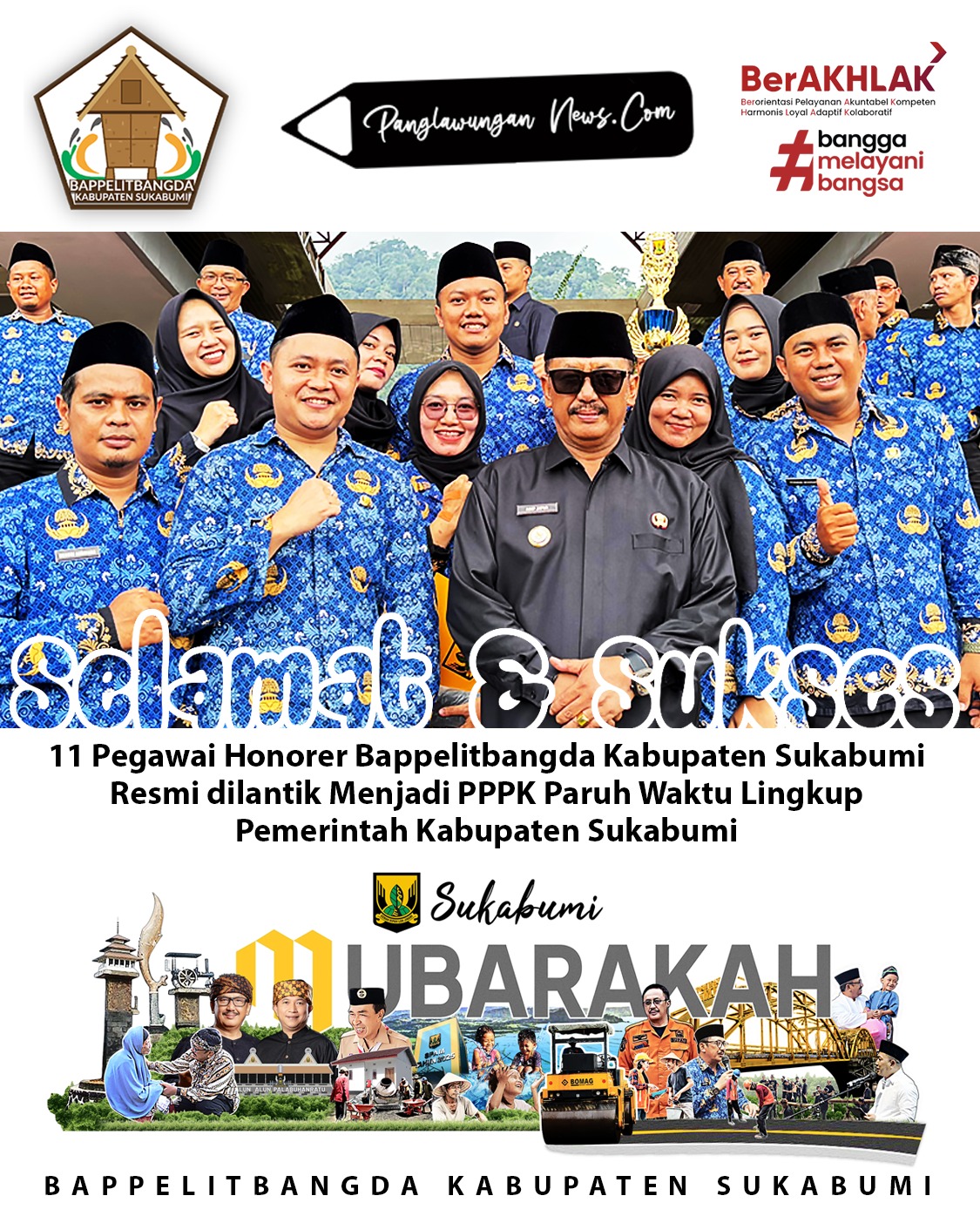 PALABUHANRATU, Panglawungannews.com – Badan Perencanaan Pembangunan, Penelitian, dan Pengembangan Daerah (Bappelitbangda) Kabupaten Sukabumi mendapat tambahan amunisi baru dalam jajaran Aparatur Sipil Negara (ASN). Sebanyak 11 pegawai honorer di lingkungan Bappelitbangda resmi dilantik menjadi Pegawai Pemerintah dengan Perjanjian Kerja (PPPK) Paruh Waktu.