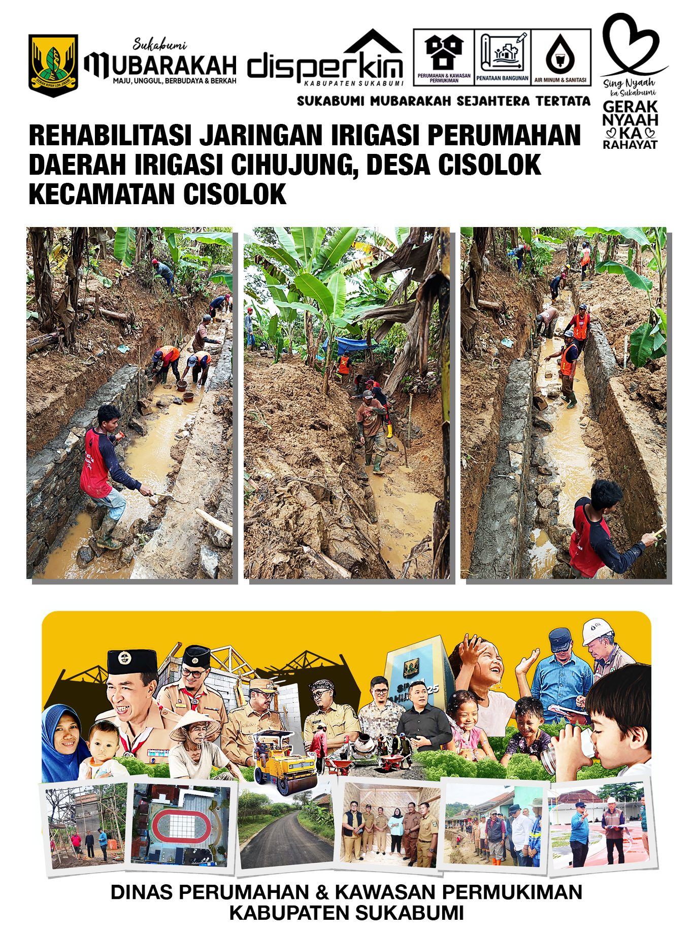 CISOLOK, PanglawunganNews – Dinas Perumahan dan Kawasan Permukiman (Disperkim) Kabupaten Sukabumi saat ini tengah bergerak cepat melaksanakan rehabilitasi jaringan irigasi perumahan di Daerah Irigasi (DI) Cihujung, Desa Cisolok, Kecamatan Cisolok. Kegiatan ini diprioritaskan untuk memulihkan fungsi saluran air yang sebelumnya mengalami penurunan kapasitas dan kerusakan. Tujuannya jelas: memastikan aliran air bagi lingkungan perumahan dapat kembali optimal, aman, dan terjaga keberlanjutannya untuk kebutuhan air sehari-hari warga. Sambutan Baik dari Masyarakat Upaya Disperkim ini disambut baik oleh masyarakat sekitar. Keberadaan saluran irigasi yang tertata dengan baik akan sangat membantu dalam pemenuhan kebutuhan air dan secara signifikan meningkatkan kenyamanan lingkungan permukiman. Rehabilitasi ini menunjukkan komitmen Pemerintah Kabupaten Sukabumi, melalui Disperkim, dalam menyediakan dan memelihara infrastruktur dasar yang vital bagi kesejahteraan warga. “SING NYAAH KA SUKABUMI, JAGA SUKABUMI,”