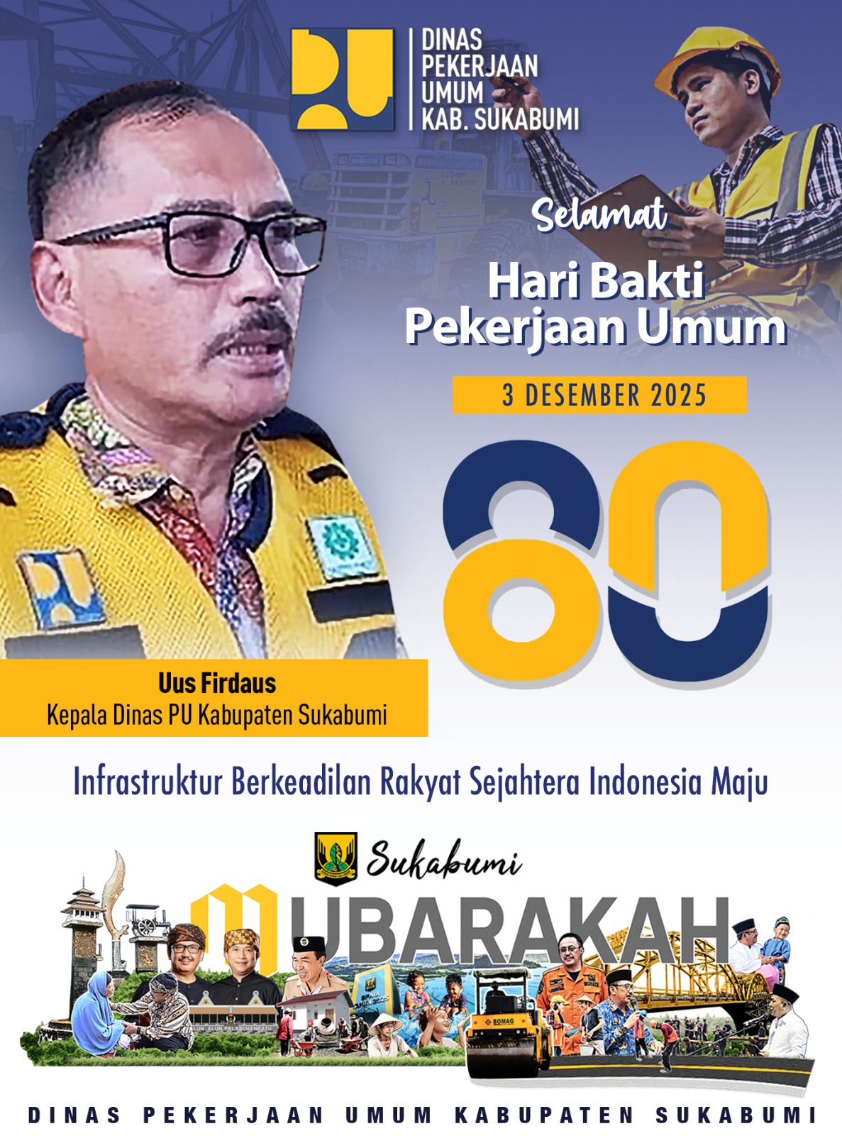 Hari Bakti PU Ke-80 Tahun 2025: Momen untuk menghargai kerja keras Insan PU. Bersama kita wujudkan infrastruktur merata agar Kabupaten Sukabumi Mubarakah!
