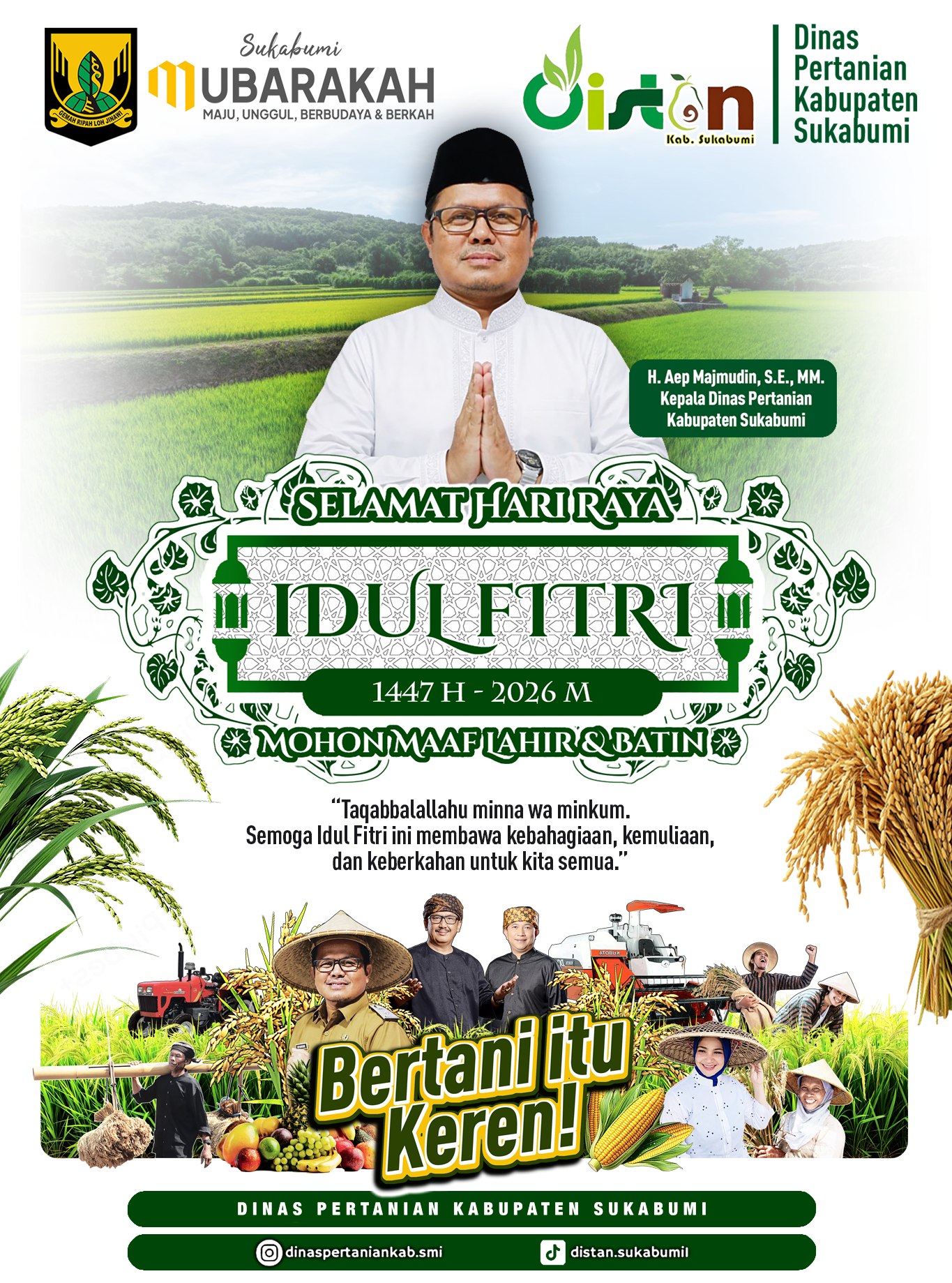 PANGLAWUNGAN.COM, PALABUHANRATU – Di tengah suasana kemenangan, Dinas Pertanian Kabupaten Sukabumi menyampaikan selamat Lebaran kepada seluruh kelompok tani dan warga. Harapan besar disematkan agar Idul Fitri membawa semangat baru untuk ketahanan pangan yang mubarokah.