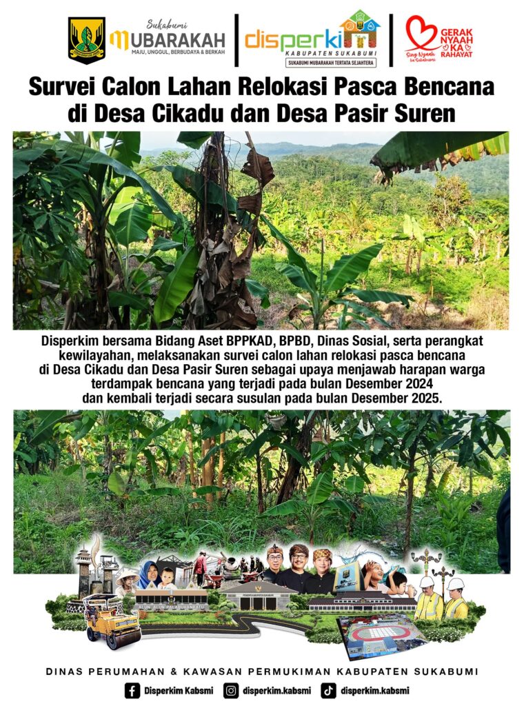 Disperkim Survey Lahan Relokasi Pasca Bencana Desa Cikadu dan Desa Pasir Suren Kabar Sukabumi 12 Januari 202612 Januari 2026kontributorLeave a Comment on Disperkim Survey Lahan Relokasi Pasca Bencana Desa Cikadu dan Desa Pasir Suren