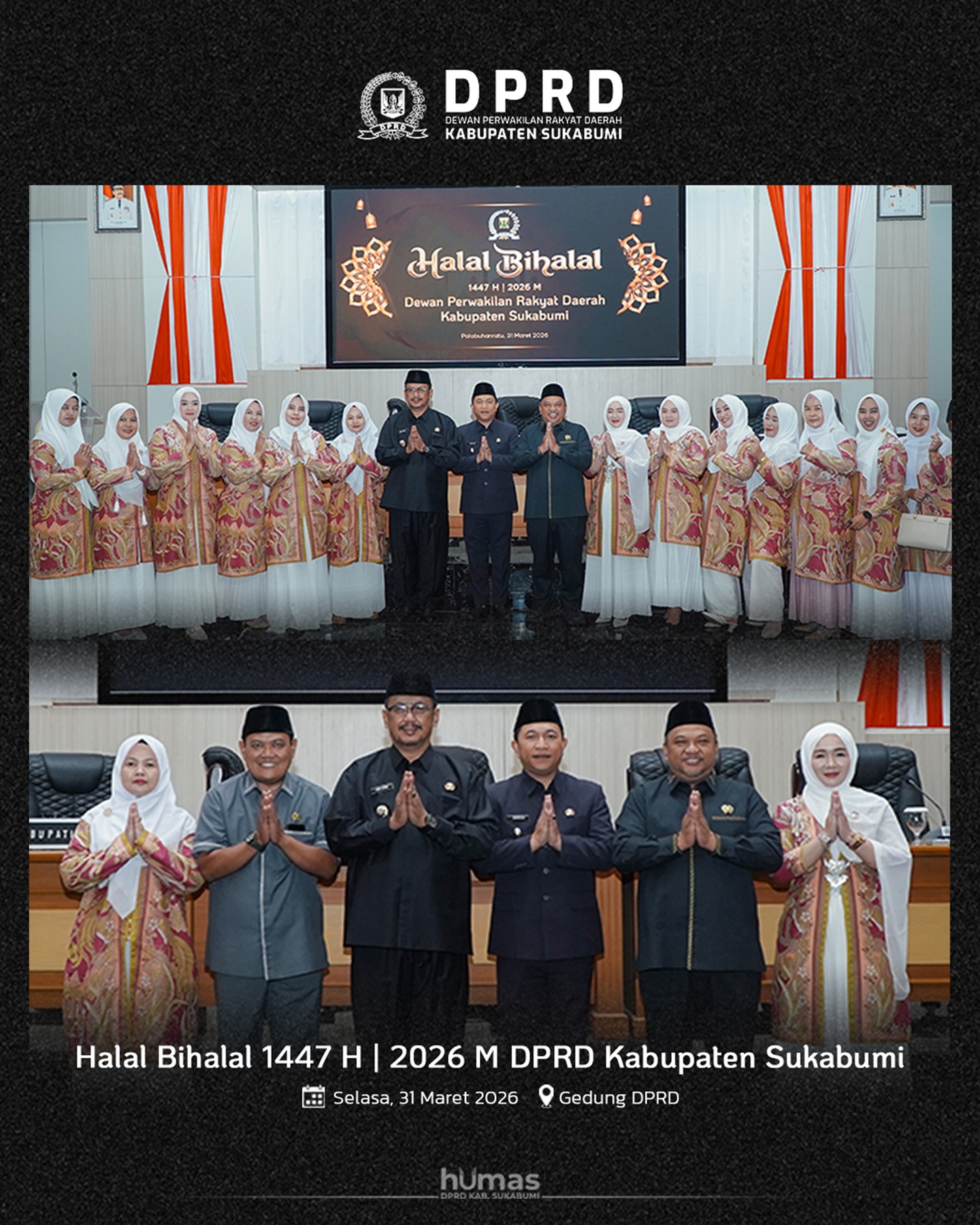 PANGLAWUNGANNEWS.COM, PALABUHANRATU – Bupati Sukabumi H. Asep Japar menghadiri undangan silaturahmi dan Halal Bihalal Idulfitri 1447 H yang digelar oleh DPRD Kabupaten Sukabumi di Ruang Paripurna, Selasa (31/3/2026). Kehadiran orang nomor satu di Kabupaten Sukabumi ini disambut hangat oleh Ketua DPRD Budi Azhar Mutawali beserta jajaran anggota dewan dan keluarga besar IKIAD. Momentum ini dimanfaatkan Bupati untuk mempererat tali silaturahmi antara jajaran eksekutif dan legislatif guna memastikan koordinasi pembangunan daerah tetap berjalan dalam satu visi yang selaras pasca-hari kemenangan.