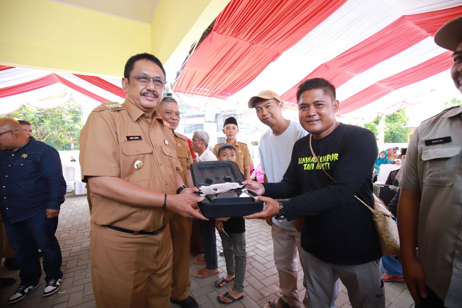 Bupati tidak datang dengan tangan kosong. Sebagai bentuk dukungan terhadap Ciemas yang dikenal sebagai lumbung pangan, Bupati menyerahkan bantuan teknologi pertanian berupa 1 unit traktor roda 4 dan 1 unit drone sprayer kepada kelompok tani setempat.