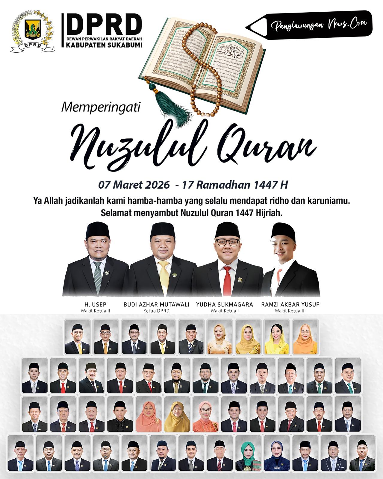 SUKABUMI – Semangat Nuzulul Quran 1447 Hijriah mewarnai lingkungan DPRD Kabupaten Sukabumi tahun ini. Pimpinan beserta seluruh anggota legislatif mengajak warga untuk memaknai peringatan turunnya Al-Quran sebagai momentum untuk meningkatkan kepedulian sosial dan mempererat silaturahmi.