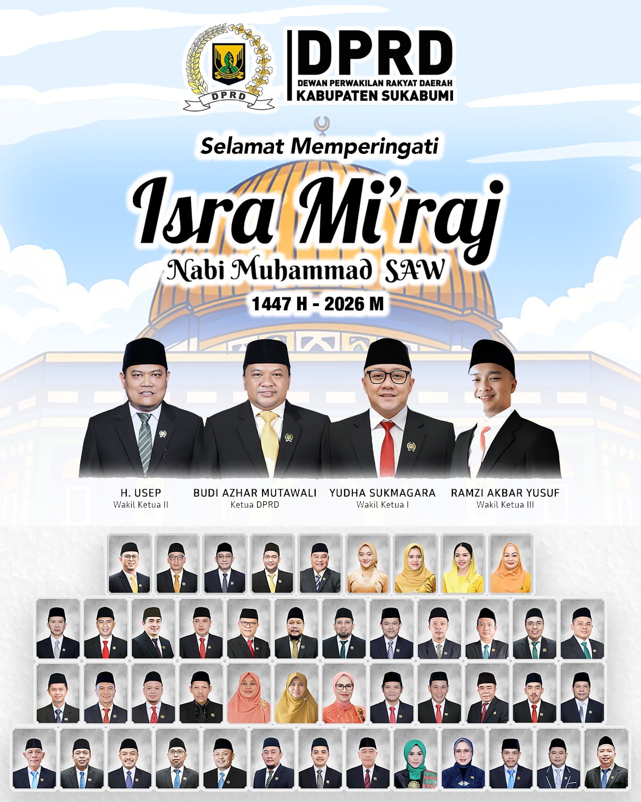 “Sing nyaah ka Sukabumi, jaga Sukabumi!” Peringatan Isra Miraj adalah waktu yang tepat untuk memperkuat rasa memiliki terhadap kabupaten ini. Mari jadikan nilai-nilai keislaman sebagai motor penggerak harmoni di Sukabumi Mubarakah.